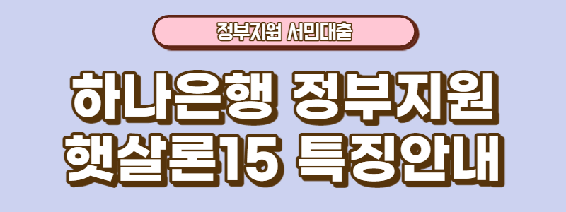 하나은행 햇살론15는 최저 신용자를 위한 정부지원 대출 상품입니다.