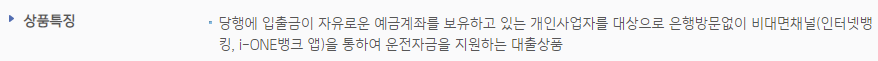 기업은행 소상공인 신용대출 특징안내
