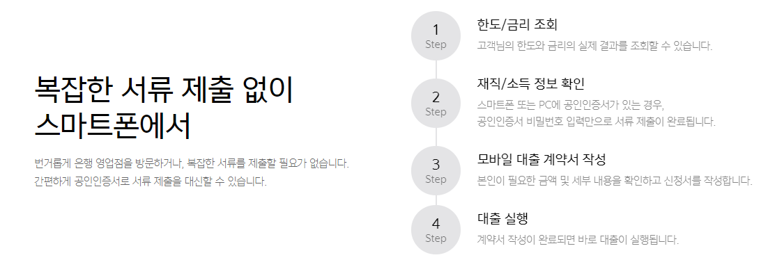 카카오뱅크 마이너스 통장대출의 신청절차는 카카오뱅크 앱을 통해 한도와 실제 적용가능한 금리를 확인 후 만족한다면 재직 및 소득정보를 입력한 후 공인인증서로 로그인하면 서류제출이 완료됩니다.