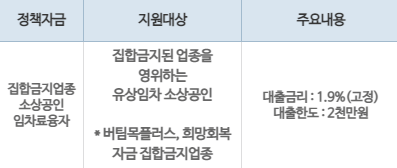 버팀목플러스 및 희망회복자금을 지원받을 수 있은 집합금지업종에 사업을 영위하고 계신 경우 대출신청 대상이 됩니다.
