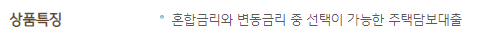 소득 요건 및 무주택 요건이 없다는 것과 혼합금리와 변도금리중 선택이 가능하다는 것이 특징입니다.