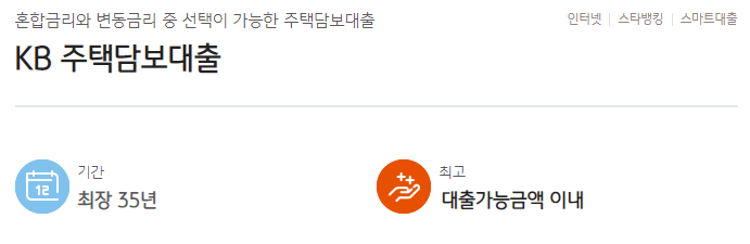 국민은행 주택담보대출은 정부지원 주택담보대출인 보금자리론 및 내집마련 디딤돌 대출의 조건을 충족하지 못하여 이용하지 못하는 분이 대안으로 이용할 수 있는 담보대출 상품입니다.
