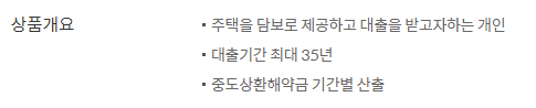 주택을 담보로 제공하는 대출상품으로 대출실행시 대출금액의 110%를 근저당권으로 설정하니 이부분 감안하여서 이용여부를 결정하셔야 할 것 같습니다.