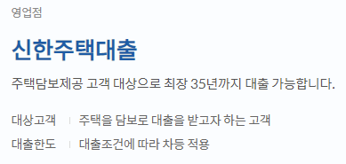 신한은행에서는 정부지원 주택담보대출을 이용하기 어려운 분들이 대안으로 이용할 수 있는 주택담보대출 상품을 취급하고 있습니다.