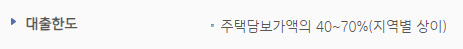 실제 한도는 담보로 제공하는 물건의 종류, 지역, 담보평가 금액 등에 따라 개인별 차등 책정되니 참고바랍니다.