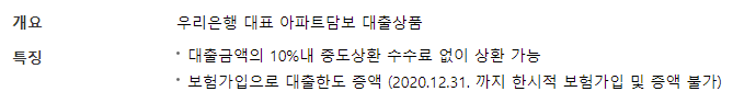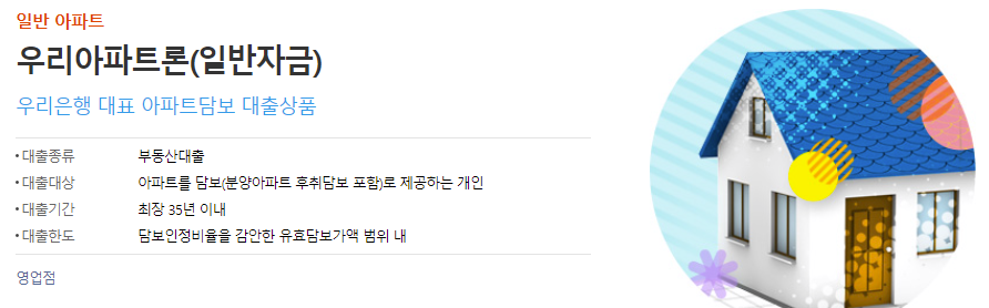 우리은행 아파트 담보대출은 우리은행 대표 아파트 담보대출 상품입니다.