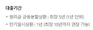- 원리금균등분할상환 : 5년 이내에서 대출을 신청하시는 분이 대출기간 결정가능