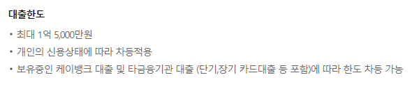 케이뱅크 신용대출은 최대 1억 5000만원 범위내에서 신청할 수 있습니다.