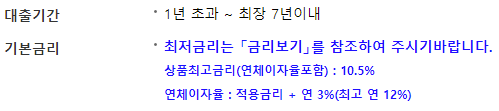 다만 위의 금리는 참고용이며, 실제 금리는 대출을 신청하시는 분의 상환여력 및 대출금액 등에 따라 개인별 차등 적용됩니다.