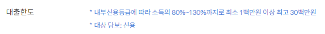 다만 신한은행 내부등급에 따라 소득의 80%에서 130%까지 대출한도가 결정됩니다.
