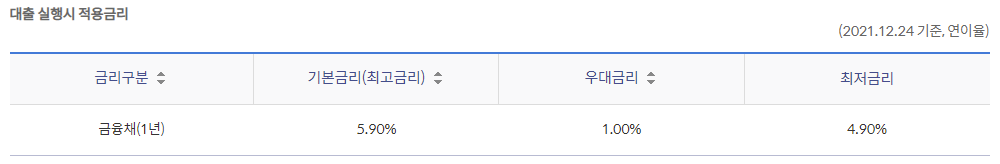 다만 위의 금리는 참고용이며, 실제 금리는 대출을 신청하시는 분의 상환여력 및 대출조건 등에 따라 개인별 차등 적용됩니다.