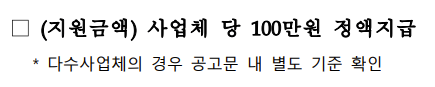 소상공인 방역지원금 금액은 사업체당 100만원을 지급받을 수 있습니다.