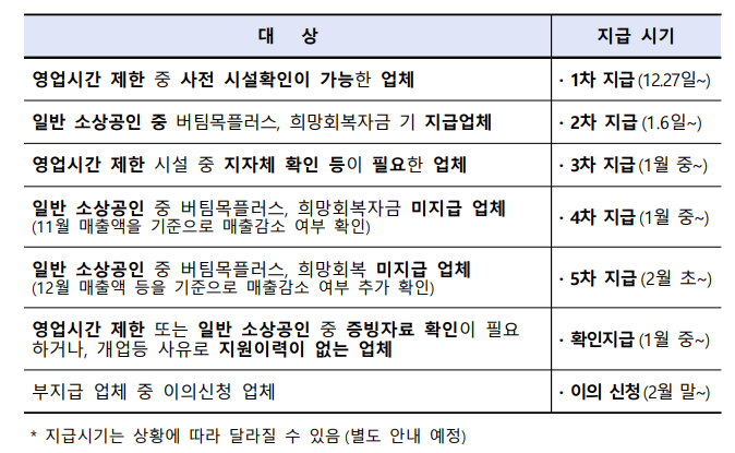 영업시간 제한조치를 받은 소상공인 중 매출이 감소한 소상공인부터 영업시간 제한조치를 받지 않은 소상공인 순으로 순차적으로 신청이 가능하니 참고 바랍니다.