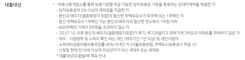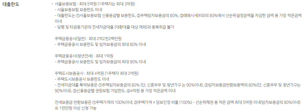 - 주택도시보증공사 : 최대 4억원, 1주택 보유자는 최대 2억원