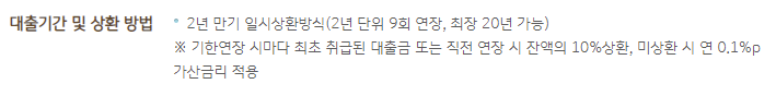 2년단위로 총 9회 연장하여 최장 20년간 이자만 납입하면서 이용할 수 있습니다.