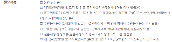 소득 요건 및 전용면적 요건 등을 충족하면 비교적 쉽게 신청할 수 있다는 것이 특징입니다.