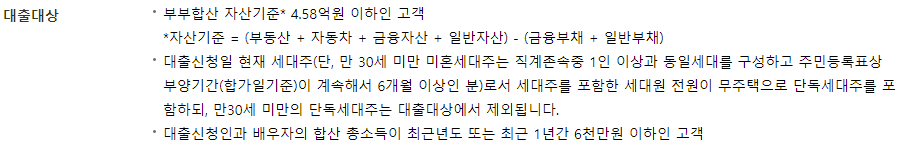 - 대출신청일 현재 세대주 또는 만 30세 이상 단독세대주