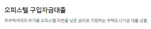 농협은행 오피스텔 담보대출은 무주택 세대의 주거용 오피스텔 마련 자금을 지원하는 정부지원 대출상품입니다.