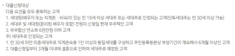 - 세대주 및 세대원 전원이 신청일 현재 무주택인 가구