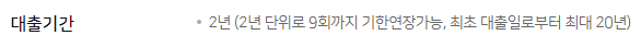 만기전 연장신청을 통해 2년단위로 9회까지 기한 연장이 가능하며, 최초 대출일로부터 20년까지 이용할 수 있습니다.
