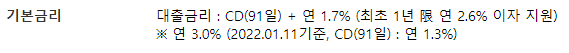 다만 최초 1년간은 이차보전을 통해 정부에서 이자를 지원받아 위의 금리보다 낮은 금리로 이용할 수 있으니 참고바랍니다.