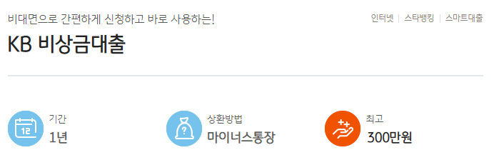 이번 시간에는 국민은행 비상금대출의 특징안내, 신청자격, 대출한도, 상환기간, 대출금리, 필요서류 등에 대해 간략히 알려드리겠습니다.