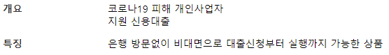 우리은행에서는 코로나19의 확산 및 방역조치로 인해 힘든 시기를 보내고 있는 소상공인 및 개인사업자를 지원하기 위한 저금리 비대면 정부지원 대출상품을 취급중에 있습니다.