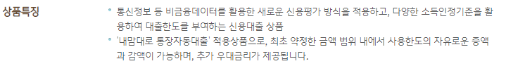 국민은행 저소득자 신용대출은 통신정보 등 비금융데이터를 활용하여 신용평가를 하고 다양한 소득인정기준을 통해 대출한도를 부여하는 신용대출 상품입니다.