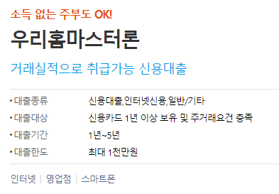 우리은행 무직자 대출 특징안내