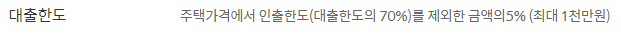 최대 1천만원과 대출한도의 70%를 제외한 금액의 5% 중 적은 금액으로 대출한도가 책정됩니다.