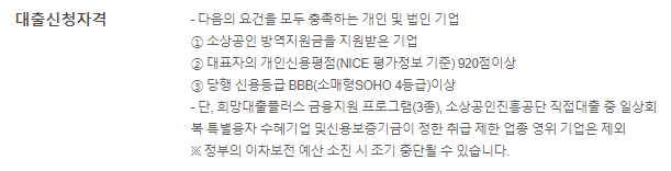 • 대표자의 개인신용평점이 NICE기준 920점 이상