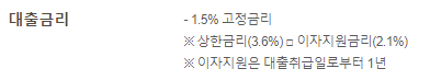 희망플러스 신용대출의 상한금리인 3.6%에서 정부의 이차보전 지원금리인 2.1%를 뺀 금리가 최종 금리로 적용됩니다.