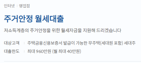 신한은행에서는 저소득계층의 주거안정을 위한 정부지원 월세자금 대출을 취급하고 있습니다.