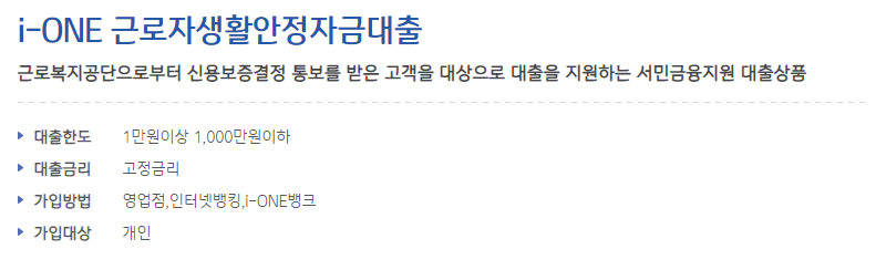 01. 기업은행 근로자 생활안정자금 대출 특징안내
