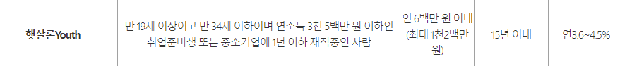 • 신청자격 : 만 19세 이상 만 34세 이하이면서 연소득 3500만원 이하의 취업준비생 또는 중소기업에 1년 이하로 재직중인 분