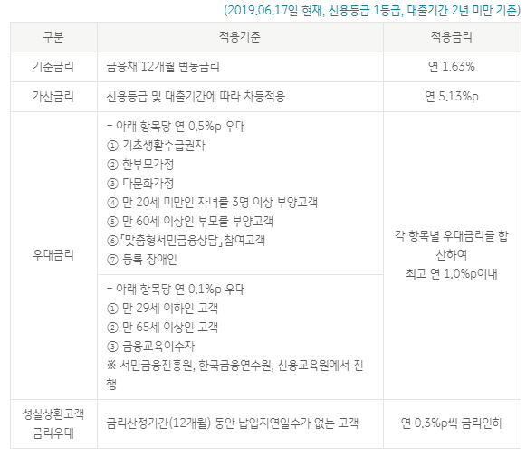 국민은행 새희망홀씨 대출 금리안내