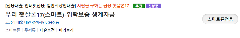 위의 4가지 조건을 모두 충족하면 우리은행 햇살론17 대출상품을 온라인으로 간편하게 신청할 수 있습니다.