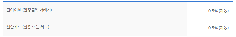 신한은행 쏠편한 포켓론의 우대금리를 적용하고 있습니다. 급여이체시 연간 0.5% 자동으로 금리가 인하되며, 신한카드 및 신한 체크카드를 사용시 연간 0.5% 금리를 인하받을 수 있으니 참고하시길 바랍니다.