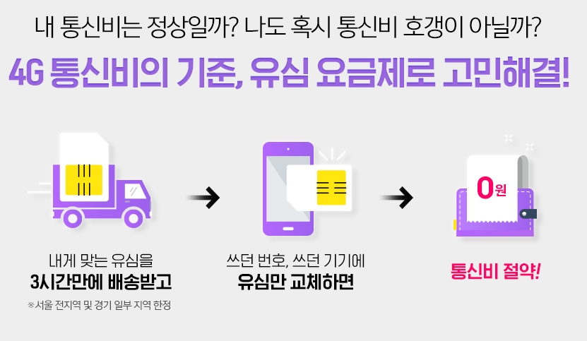 - 경기 일부 지역 및 서울지역은 3시간만에 배송되며, 기타 지방 지역은 하루 이틀이면 유심이 배송완료됩니다.