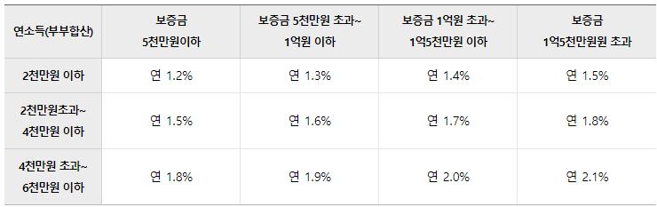 우리은행 신혼부부 전세자금대출의 금리는 부부합산 연소득과 임차보증금 금액을 고려하여 최종 적용됩니다. 위의 금리표를 확인하셔서 본인의 금리를 산출해보시길 바랍니다.