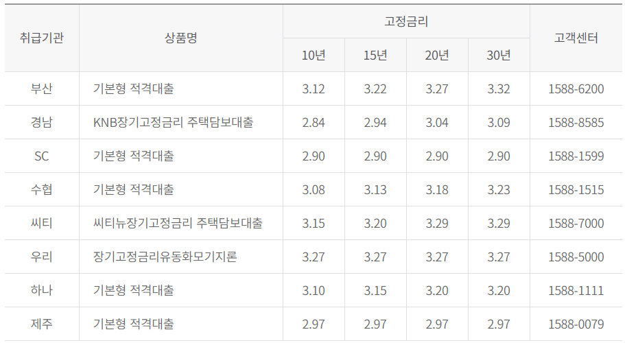2. 한국주택금융공사 금리고정형 적격대출 - 신청자격, 대출한도, 대출금리