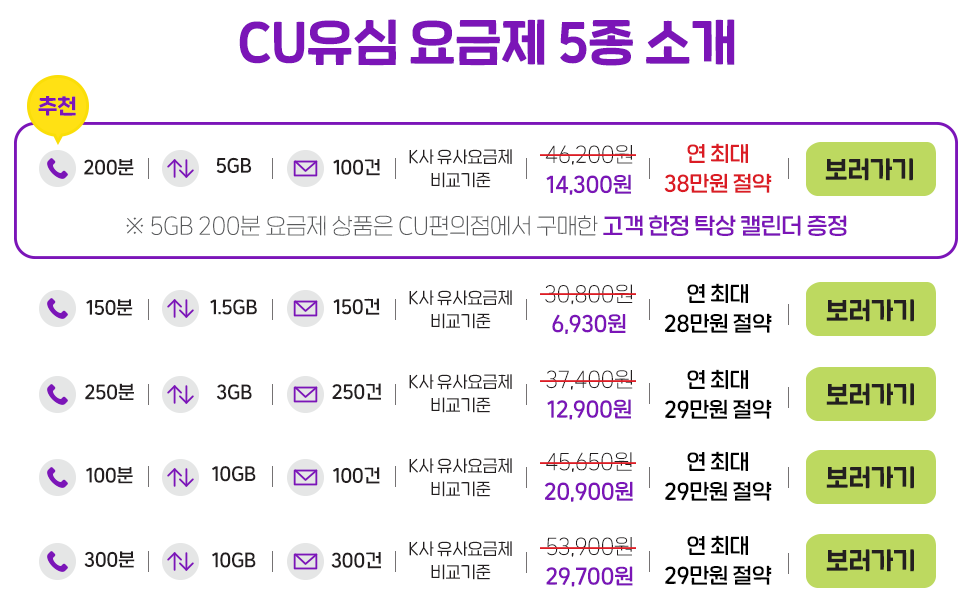 하지만 각종 멤버쉽 혜택을 잘 이용하지 않는 분과 기존 통신사와 연계된 TV 및 인터넷등의 결합할인 내역이 없다면 가계 통신비 절약을 위해 한번쯤은 헬로모바일 CU요금제를 고려해볼 만하다고 보여지니 신중히 생각해보시길 바랍니다.