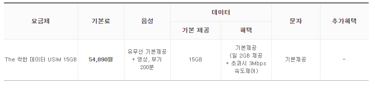 보시다시피 기본요금 월 54,890원에 매월 제고오디는 데이터는 겨우 15GB로 그닥 가성비가 좋지않은 그런 요금제입니다.