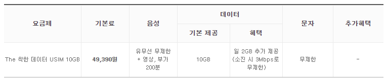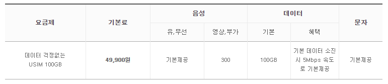 데이터 걱정없는 USIM 100GB 요금제와 비교했을 때 기본료는 비싸지만 실제 제공되는 혜택은 좋지 않은 그런 요금제이니 이 요금제는 가급적 피하시길 바랍니다.