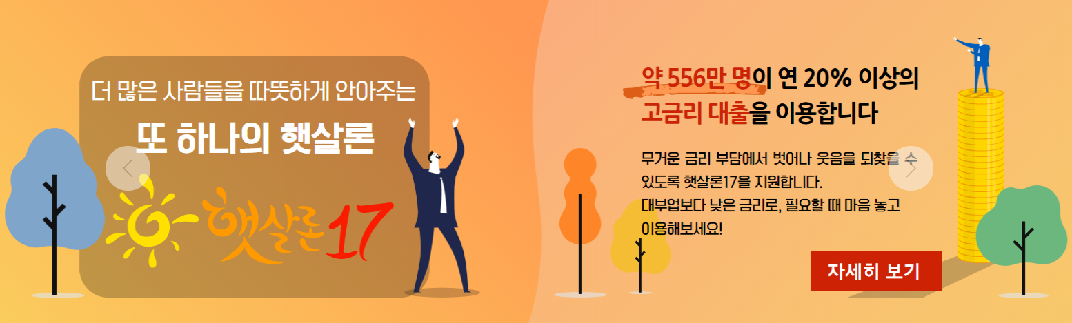 서민금융진흥원 햇살론17은 연간소득과 신용등급이 낮아 연간 20% 이상의 고금리 대출 이용이 불가피한 최저신용자를 위해 만들어진 국민행복기금 보증 서민금융 상품입니다.