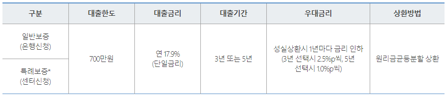 대출기간은 연간 17.9%의 단일금리(신청한 모든 사람이 동일한 금리를 적용받는 것)로 제공되며, 상환방법은 원리금균등분할 상환으로 진행됩니다.