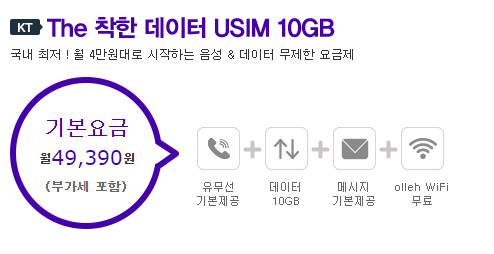 데이터는 매월 기본 10GB가 무료로 제고오디고 데이터 소진시 하루 2GB가 추가 제공됩니다. 단 스마트폰 데이터로 테더링을 할 경우 기본 제공되는 10GB안에서만 제공되고 추가로 제공되는 하루 2GB의 데이터로는 테더링을 할 수 없거나 추가요금이 발생할 수 있으니 주의하시길 바랍니다.