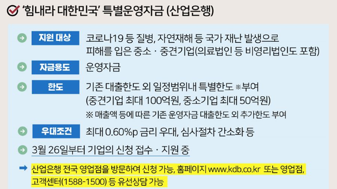 1. 산업은행 특별운영자금 : '힘내라 대한민국'