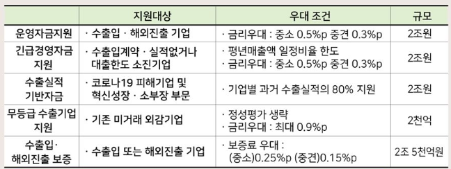 수출입은행 코로나19 피해기업 긴급 금융지원의 대상 및 우대조건, 자금지원 규모는 위와 같으니 참고하시길 바랍니다.
