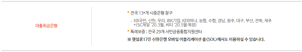 7. 서민금융 통합지원센터 햇살론17 취급은행